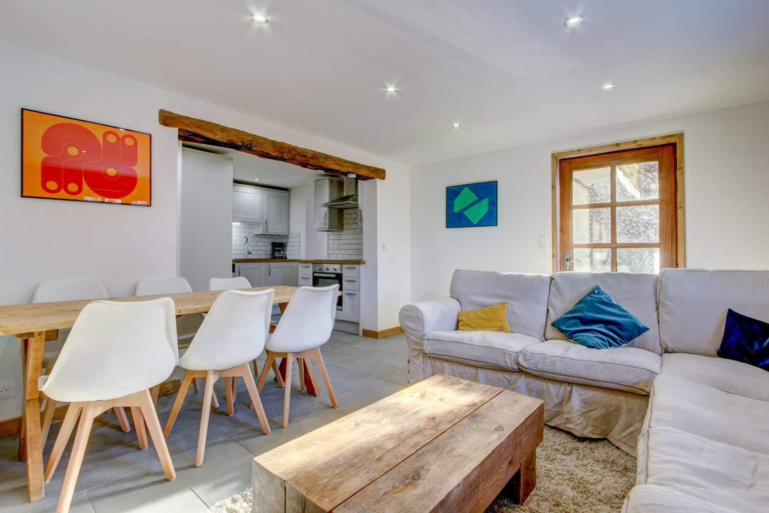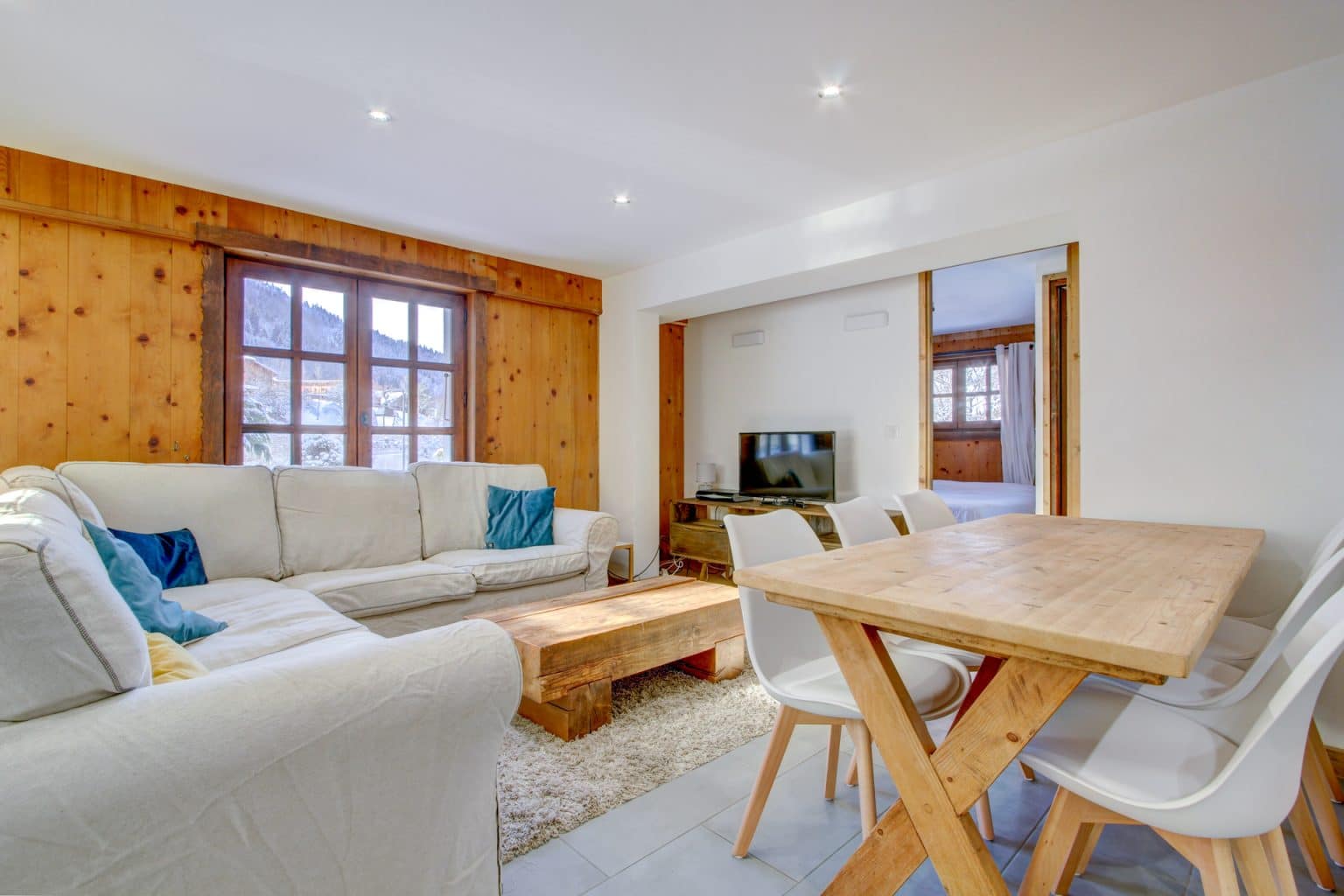 Recently renovated 3 bedroom, 2 bathroom apartment with garden situated within a 5 minute walk of the centre of Morzine. The property has a large double/twin room with its own ensuite bathroom, another double room with double bed plus a smaller double room (small double bed 120cm wide) with French windows. Large open plan lounge with large L shaped sofa and dining table with chairs. TV with UK Freeview. Modern fully equipped kitchen with new appliances. There is a separate bathroom with shower toilet and basin. The property has off street parking for two cars (to be parked nose to noser) plus there is shared bike storage. The apartment has its own private garden with gas bbq.