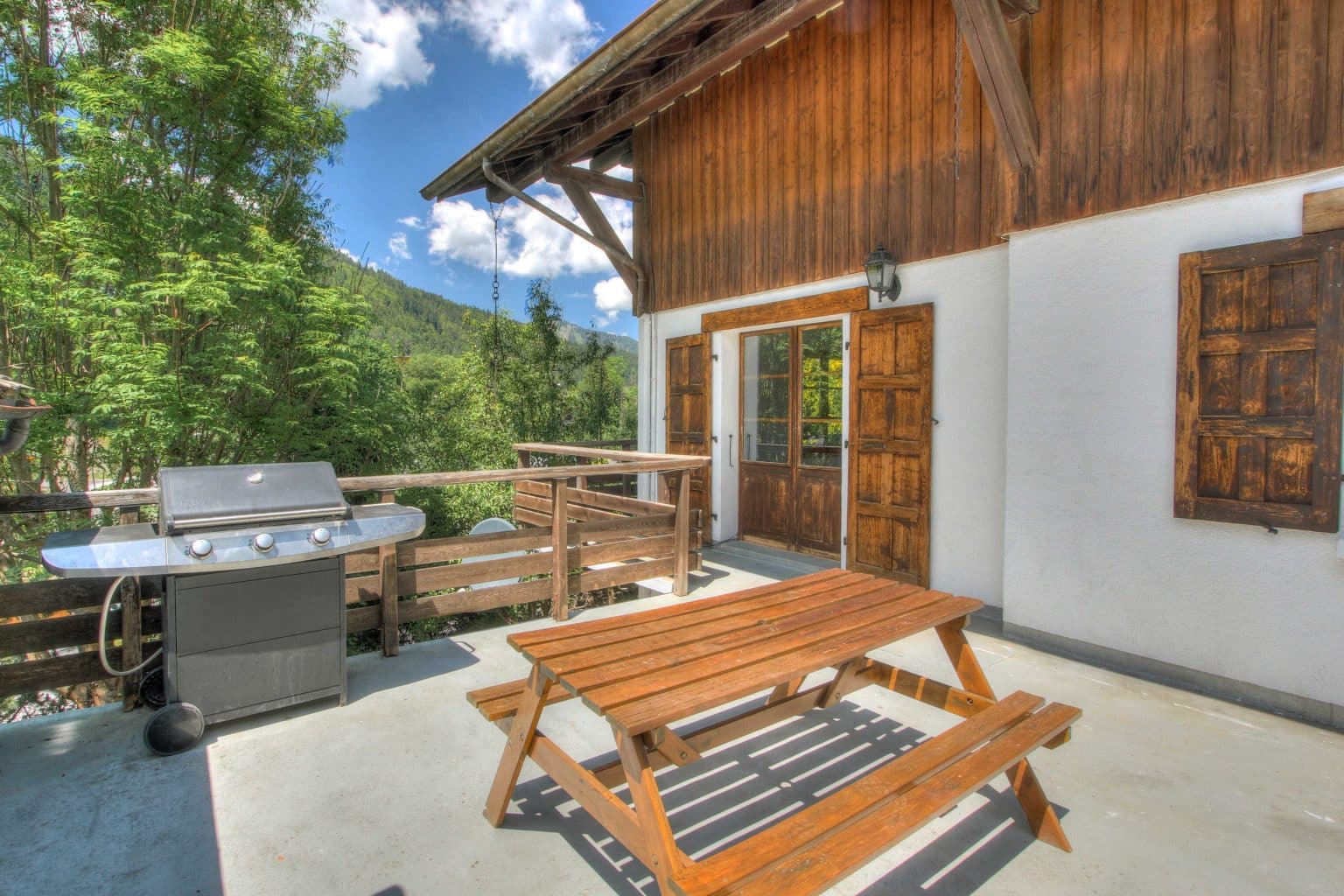 Four bedroom recently renovated chalet in the centre of Morzine that will sleep up to nine people. The ground floor of the chalet includes a good sized lounge with plenty of comfortable seating, fully equipped kitchen with range cooker, dishwasher, fridge freezer, sink and large dining table and chairs. There is a double/twon bedroom, bathroom with shower and basin and separate toilet on the ground floor plus small room for drying ski/snowboard boots/jackets. The top floor of the chalet includes a large double/twin master bedroom with ensuite bathroom with bath, shower, basin and toilet. Large triple bedroom with three single beds plus an additional double/twin bedroom. Separate bathroom with walk in shower and basin, separate toilet. There is large terrace that leads on from the lounge area with outdoor furniture, gas BBQ and large parasol. The property has its own separate mazot for bike storage. Parking for 2 vehicles.