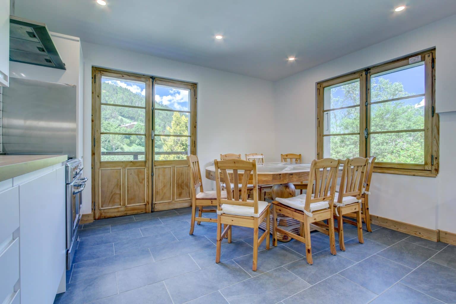Located within a 5 minute walk of the centre of Morzine. The bus stop for the free ski bus to the Pleney and Prodain cable cars are situated in front of the chalet.
