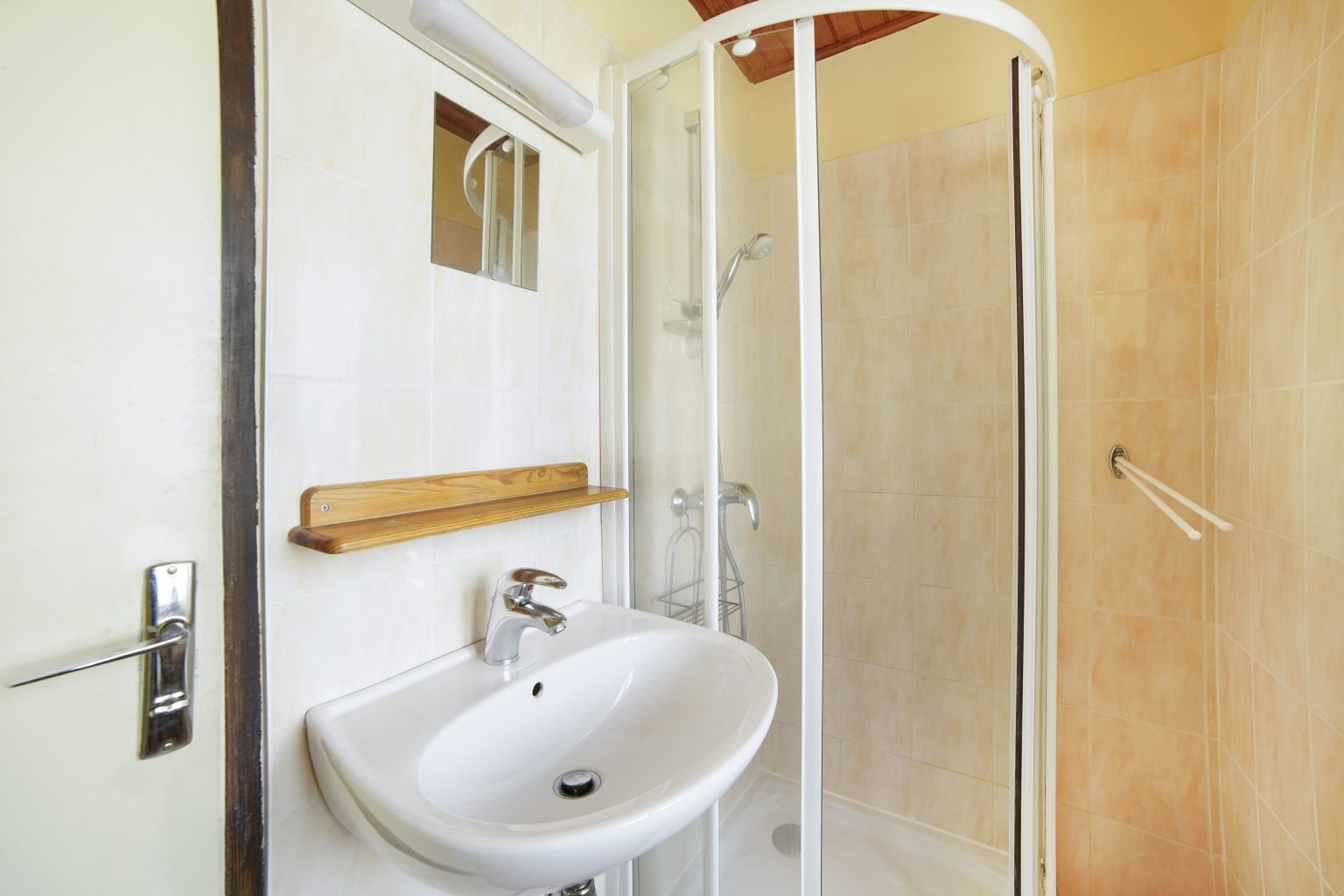 • The two bedrooms, accommodating a total of 5 people, are situated on the first floor. One room is furnished with two single beds, while the other room features three single beds. Both bedrooms offer built-in wardrobes for convenient storage. Please note that the second room is accessible through the first bedroom, with a separating door.