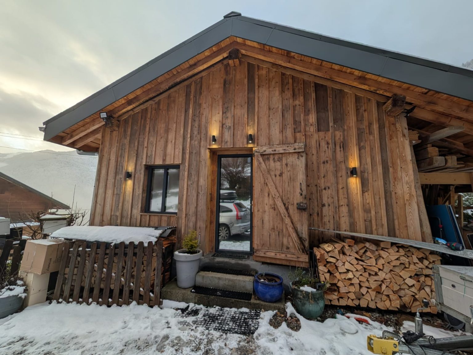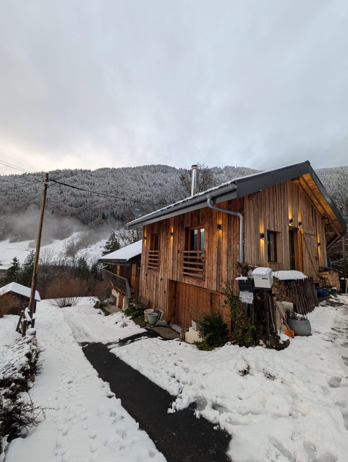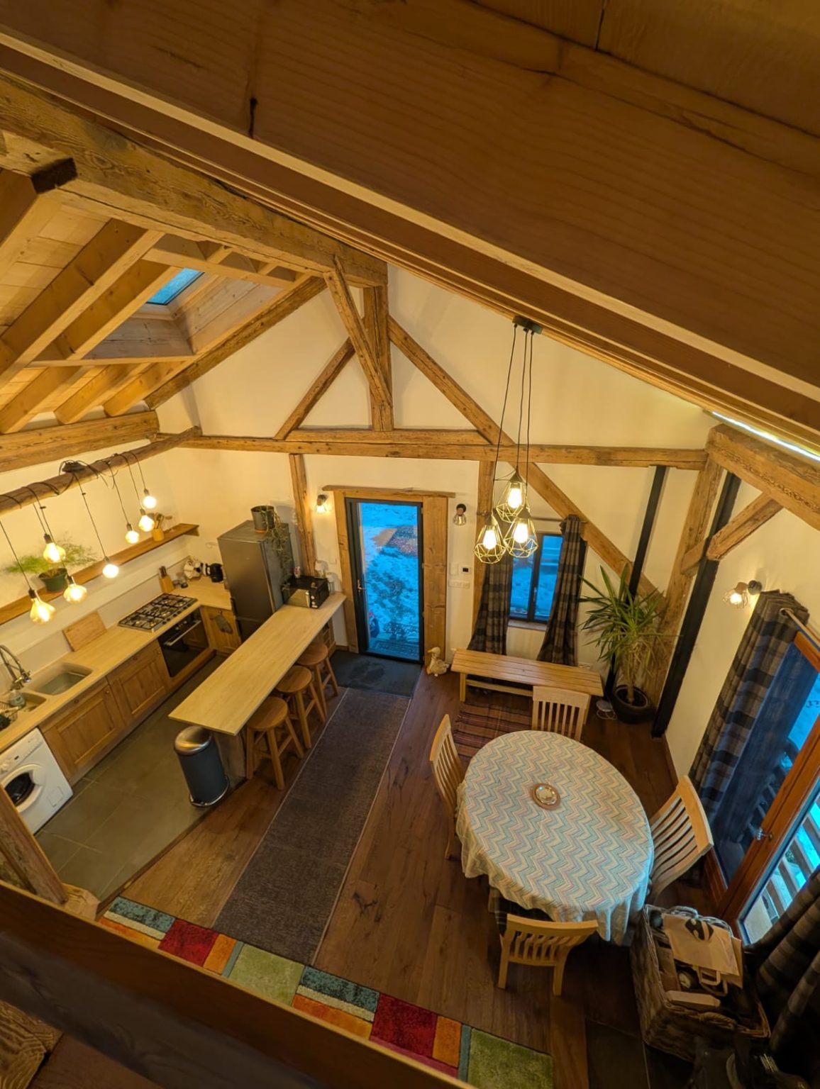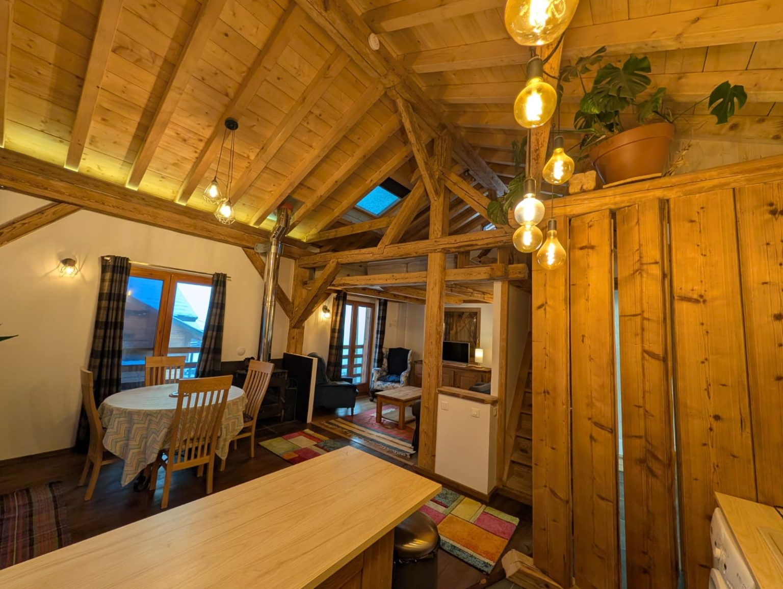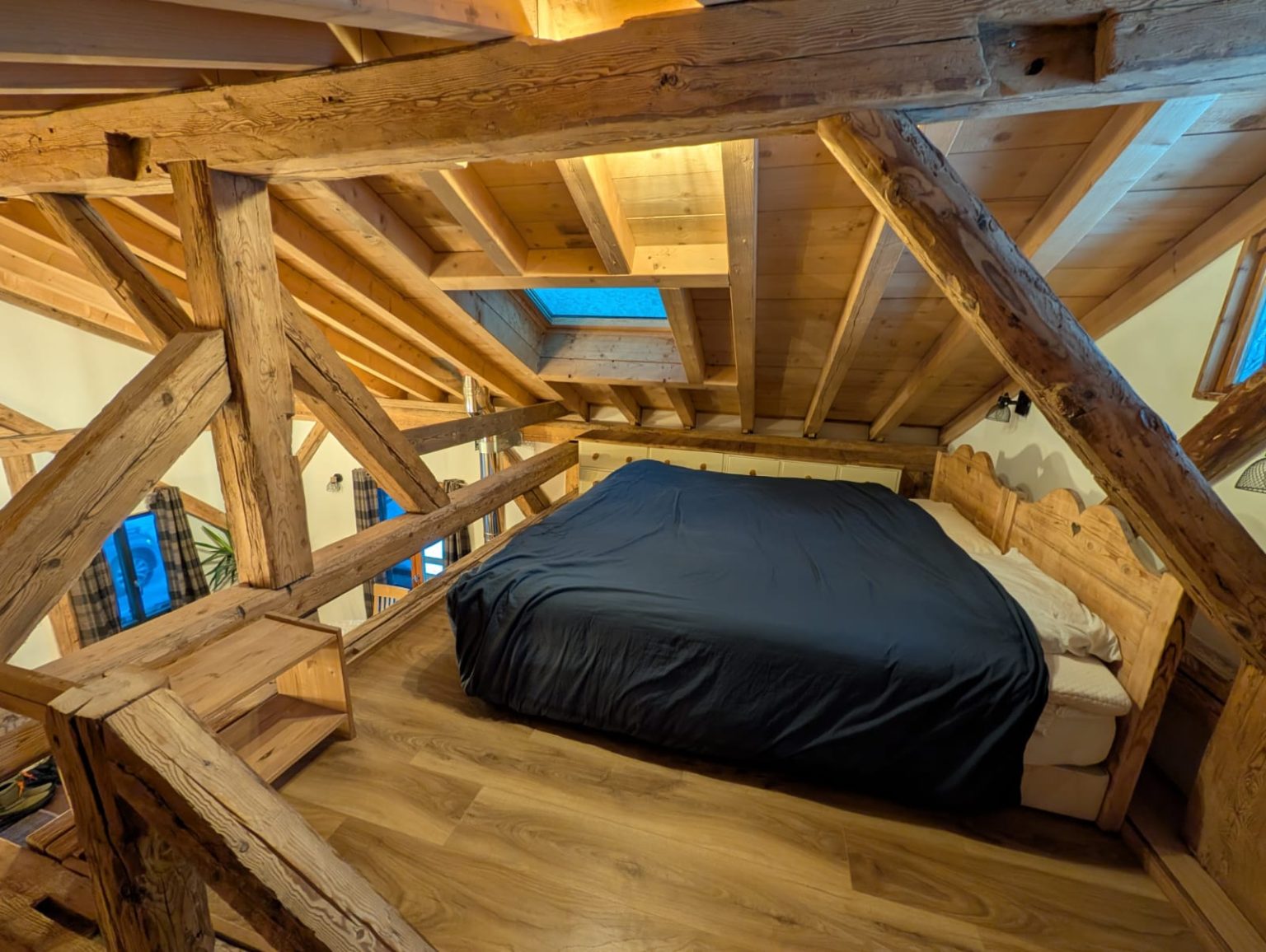 A cosy, well-equipped space perfect for a couple. The Bothy features underfloor heating, a wood-burning stove, Starlink internet, a washing machine, and a brand-new fridge/freezer. Sleeping options include a mezzanine with either two singles or a Super-King double, an additional coin montagne if needed, and a sofa bed. Guests also benefit from a dedicated ski-boot room and stunning south-facing views of the Roc d’Enfer