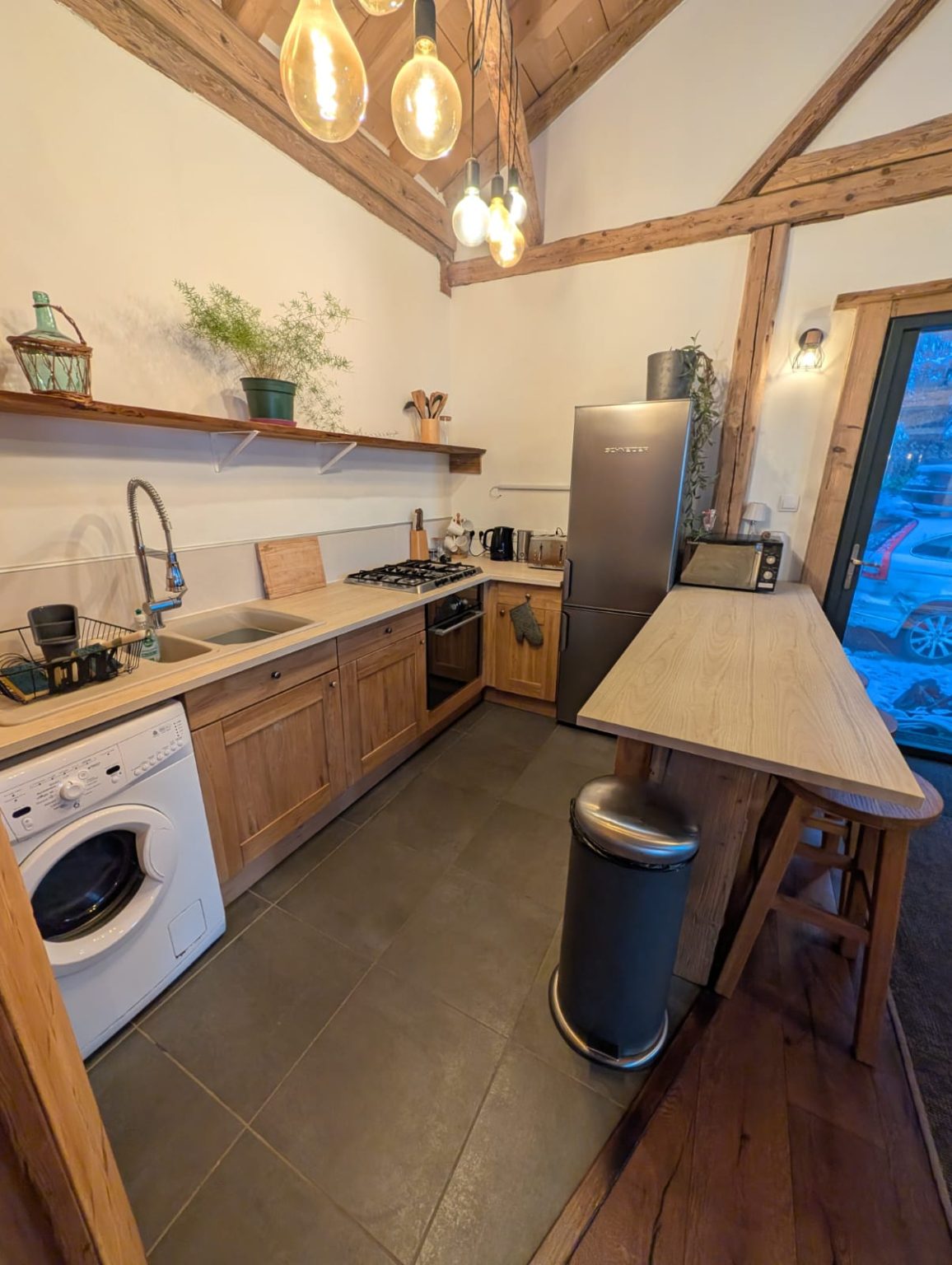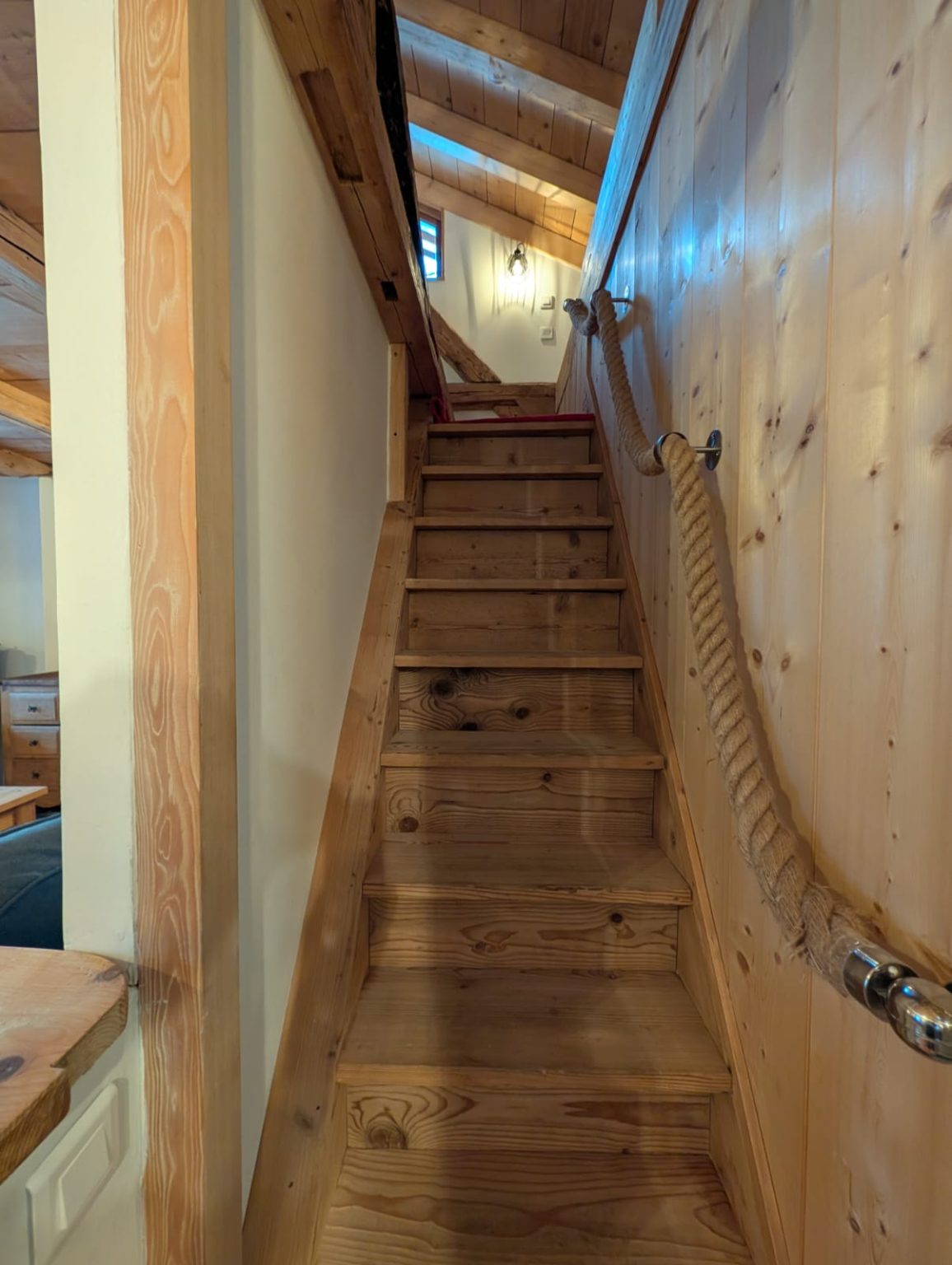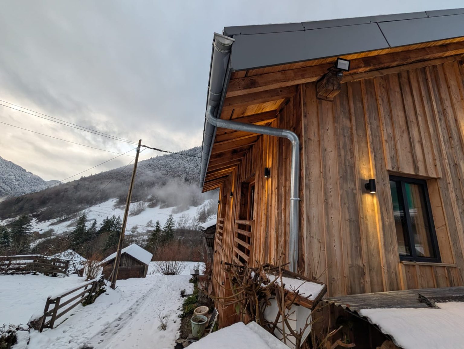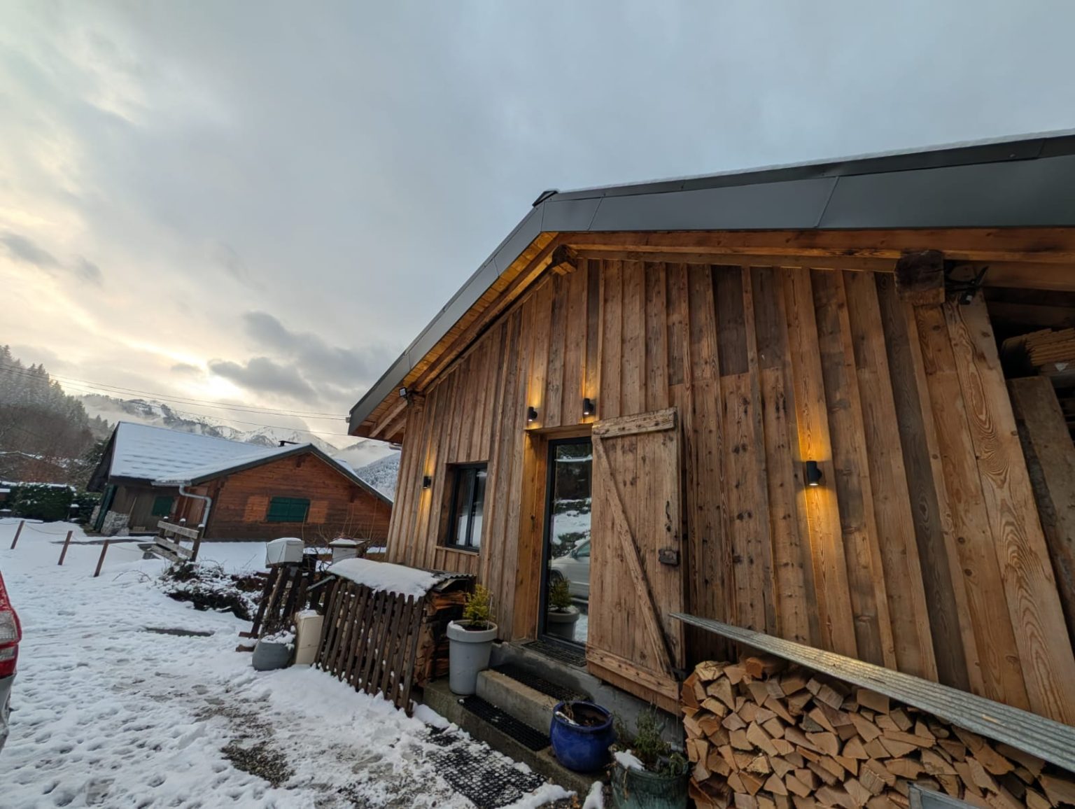 A cosy, well-equipped space perfect for a couple. The Bothy features underfloor heating, a wood-burning stove, Starlink internet, a washing machine, and a brand-new fridge/freezer. Sleeping options include a mezzanine with either two singles or a Super-King double, an additional coin montagne if needed, and a sofa bed. Guests also benefit from a dedicated ski-boot room and stunning south-facing views of the Roc d’Enfer